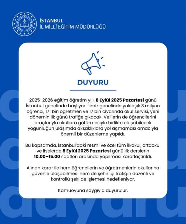 08.09.2025 PAZARTESİ İLK DERS SAATİ DUYURUSU